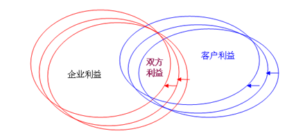 如何才能改善客戶得到的價值呢?如何才能在企業(yè)利益與客戶利益之間找到一個最佳平衡點?方法之一是把自己想要做的事情勾勒一下。我們想要找到的是雙贏區(qū)域。在比較復雜的情況下,這個雙贏區(qū)域可能還會移動。設計一個應用軟件并配置一套人員流程來跟蹤一個會移動的雙贏區(qū)域顯然是不大可能的。這也正是CRM為何如此難以把握的原因之一。