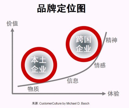 客戶體驗(yàn)是客戶關(guān)系管理的重要組成部分。根據(jù)過去數(shù)年評選中國最佳CRM實(shí)施企業(yè)所作的分析,本土與外資企業(yè)在企業(yè)體檢中各項(xiàng)主要評分中有較大差距,其中之一是客戶體驗(yàn)(-7.1分,見圖一、本土與跨國企業(yè)之差距)。本土企業(yè)若只提供低層次的客戶體驗(yàn),只為客戶帶來低價(jià)值,也只能打價(jià)格戰(zhàn)、做代工,很難做大做強(qiáng)打通全球市場。做好品牌,其實(shí)再深入一點(diǎn)說就是要做好客戶體驗(yàn),價(jià)值(價(jià)格)才會(huì)上去(見圖二、品牌定位)。