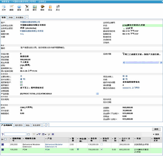 具體來講,企業(yè)的銷售人員通過VamCRM定義的銷售管道實(shí)現(xiàn)對(duì)銷售工作的流程化跟進(jìn)和管理;玖鞒淌牵菏紫蠕N售人員通過各種途徑獲得客戶信息,與之溝通聯(lián)系,有業(yè)務(wù)進(jìn)一步發(fā)展的可能后形成相應(yīng)的銷售線索,便開始切入銷售管道。然后,通過相關(guān)業(yè)務(wù)活動(dòng)與客戶進(jìn)行接觸,支持業(yè)務(wù)的不斷發(fā)展,隨后,形成業(yè)務(wù)機(jī)會(huì)。若該項(xiàng)業(yè)務(wù)進(jìn)入實(shí)質(zhì)性的需求分析及合同的前期談判階段,即升級(jí)為系統(tǒng)的報(bào)價(jià)階段,可以對(duì)客戶的需求進(jìn)行報(bào)價(jià)、出具解決方案。接著,開展一系列商務(wù)公關(guān)活動(dòng),以雙方都可接受的實(shí)現(xiàn)方式簽訂合同,即在系統(tǒng)里形成銷售訂單。最終促進(jìn)形成發(fā)貨單,進(jìn)入實(shí)施、合同執(zhí)行、收款等相關(guān)后續(xù)的環(huán)節(jié)。與此同時(shí),所有與現(xiàn)實(shí)中同客戶合約相關(guān)的信息都可以以統(tǒng)一的形式在系統(tǒng)中存儲(chǔ),并且可以在獨(dú)立銷售階段間輕松遞進(jìn)轉(zhuǎn)換,有效提高系統(tǒng)的易用性和信息統(tǒng)一的關(guān)聯(lián)程度。每一個(gè)銷售階段都隱含著不同的側(cè)重目標(biāo),從線索挖掘、銷售過程追蹤、直至交易達(dá)成,企業(yè)可以對(duì)銷售過程進(jìn)行全面過程化管理,并且各個(gè)流程之間信息高度關(guān)聯(lián)和集成統(tǒng)一。同時(shí),VamCRM融合了經(jīng)眾多企業(yè)多年實(shí)踐證明非常有效的MEDDIC銷售方法,不但能夠使銷售流程更加順暢,更能夠幫助企業(yè)深度把握客戶需求,掌握客戶購(gòu)買習(xí)慣,明顯提升銷售業(yè)績(jī)。