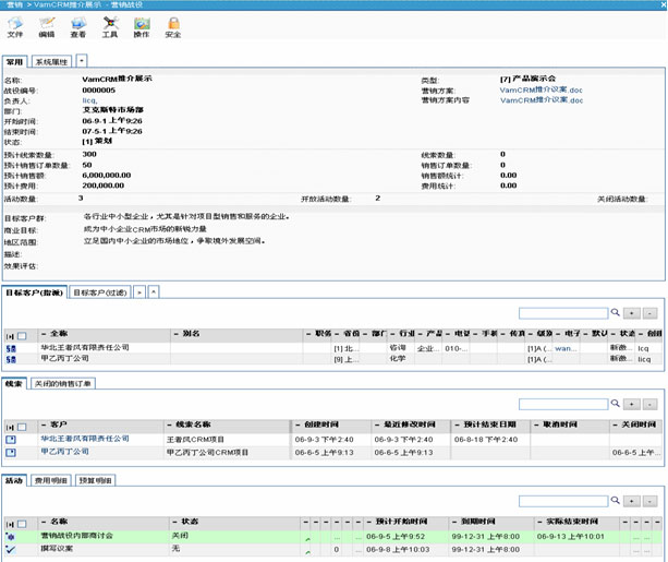 VamCRM營(yíng)銷自動(dòng)化提供了目標(biāo)明確、計(jì)劃清晰、結(jié)果可度量的營(yíng)銷戰(zhàn)役管理。實(shí)現(xiàn)以營(yíng)銷戰(zhàn)役為樞紐,市場(chǎng)細(xì)分,確定目標(biāo)市場(chǎng)和客戶群,制定客戶營(yíng)銷策略和宣傳方式,專注將目標(biāo)客戶轉(zhuǎn)化為實(shí)際的客戶,能夠讓企業(yè)達(dá)到事半功倍的營(yíng)銷效果。營(yíng)銷戰(zhàn)役中集成豐富的市場(chǎng)活動(dòng)類型,精細(xì)化管理營(yíng)銷活動(dòng),記錄所有在營(yíng)銷戰(zhàn)役過程中相關(guān)的歷史活動(dòng)、文檔、備忘錄等數(shù)據(jù),能夠?qū)撛诳蛻魧?shí)現(xiàn)一對(duì)一營(yíng)銷,可根據(jù)客戶的特定需求進(jìn)行差異化營(yíng)銷。