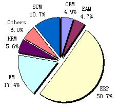 賽迪顧問定義的管理軟件市場包括財(cái)務(wù)管理軟件、ERP軟件、CRM軟件、SCM軟件、HRM軟件、EAM軟件等細(xì)分產(chǎn)品市場。2006年ERP軟件銷售額已經(jīng)獨(dú)占50.7%的比例,但是在增長率方面,對人力資源管理、激勵(lì)制度、績效考核等規(guī)范化需求的上升使HRM軟件同比增長了26.1%;對銷售、客戶資源的精細(xì)化管理帶來CRM軟件25.7%的同比增長率;另外,一個(gè)值得關(guān)注的亮點(diǎn)是EAM軟件比去年同期增長了24.8%,增長的主要?jiǎng)右騺碓从贓AM軟件應(yīng)用從電力行業(yè)向其它資產(chǎn)密集型行業(yè),包括能源、精密制造、公共事業(yè)等領(lǐng)域的迅速滲透。這三類產(chǎn)品的較快增長反映了一個(gè)有趣的特點(diǎn)是:這三類產(chǎn)品都是基于關(guān)系的管理,包括客戶關(guān)系、供應(yīng)商關(guān)系、員工關(guān)系,這表明企業(yè)用戶正試圖從不同角色的關(guān)系理順、定位清楚、聯(lián)系強(qiáng)化中尋求管理的改進(jìn)。雖然這個(gè)特點(diǎn)僅僅是從不同產(chǎn)品線的銷售趨向透示出的,但實(shí)際上它表達(dá)了用戶對于流程規(guī)范、精細(xì)管理的愿望。