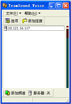 2.基本操作。開服務(wù)器,只需點(diǎn)擊一下“服務(wù)器:開”這個按鈕,你的機(jī)器就變成服務(wù)器了,很方便(注意要先設(shè)定默認(rèn)頻道)。加入你的戰(zhàn)友開了服務(wù),你要加入先點(diǎn)擊“添加連接”,在對話框中要輸入對方的IP和密碼,然后再“添加頻道,在局域網(wǎng)中,則直接“添加頻道”就ok了。