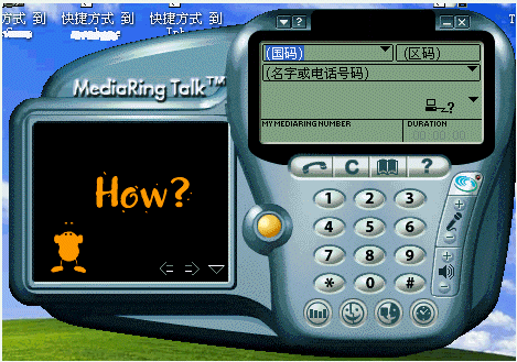 1.撥打電話:選擇所撥打電話的類型為"PC to Phone";選擇國家代碼(中國填寫86),從下拉列表中直接選擇即可;輸入城市區(qū)號,通過鍵盤輸入或在"電話機(jī)"中按鍵均可;鍵入用戶號碼;點(diǎn)擊呼叫按鈕,這時彈出一個對話框,請您輸入Value Fone帳號和密碼,正確輸入后,MediaRing 會通過服務(wù)器查找對方是否也已登錄在服務(wù)器上,如果是,對方的 MediaRing 就會自動響鈴,若對方接聽,雙方就可以通過 MediaRing 進(jìn)行通話。如果與對方?jīng)]有聯(lián)絡(luò)成功,可能是對方并不在線,此時MediaRing會詢問是否要斷開并聯(lián)絡(luò)對方,選擇“是”,接下來軟件會斷線并通過調(diào)制解調(diào)器直接向?qū)Ψ綋芴枺ㄏ喈?dāng)于通過你的電話直接撥打?qū)Ψ教柎a),對方聽到一串特殊的響鈴(兩到三聲鈴聲)后便會明白有人在網(wǎng)絡(luò)上想找他了。對方應(yīng)立即聯(lián)上Internet并使用MediaRing接聽電話。
