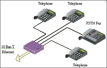 以太網(wǎng)相連,可支持兩個(gè)標(biāo)準(zhǔn)的電話終端進(jìn)行呼叫。