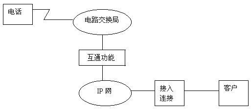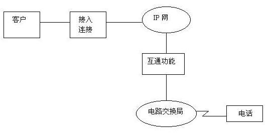 第三階段的重點是電路交換網(wǎng)通過IP網(wǎng)至電路交換網(wǎng),即實現(xiàn)以Internet作為傳送手段進行通信的目的,其示意圖如圖所示。