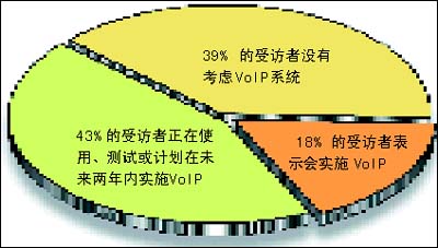 該調(diào)查收集了全球254名高級(jí)管理人員對(duì)未來(lái)企業(yè)網(wǎng)絡(luò)的意見(jiàn)和看法。其中,43%的受訪(fǎng)者表示,他們正在使用、測(cè)試或計(jì)劃在未來(lái)兩年內(nèi)實(shí)施VoIP;另外 18% 的受訪(fǎng)者表示,從長(zhǎng)遠(yuǎn)的角度來(lái)講,他們會(huì)實(shí)施 VoIP。市場(chǎng)預(yù)測(cè)也顯示相同的樂(lè)觀前景。研究機(jī)構(gòu)Gartner Dataquest預(yù)期到2008年,公用電話(huà)交換網(wǎng) (PSTN) 的零售語(yǔ)音收入將輕微下跌,而VoIP的零售收入則上升 38.6%。