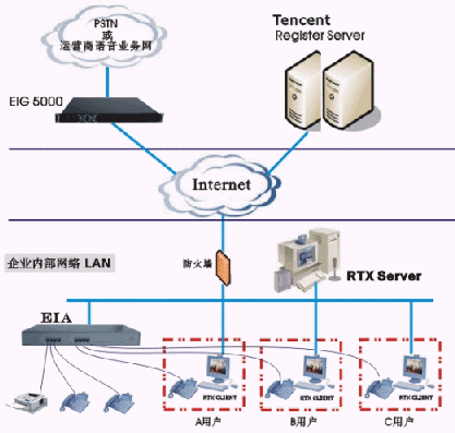 IPPBX-RTX解決方案是基于局域網(wǎng)或者Internet網(wǎng)的網(wǎng)絡應用,能夠將IPPBX的VoIP語音通信系統(tǒng)和RTX企業(yè)即時通信系統(tǒng)很好地結合,以提供客戶在線狀態(tài)感知和在RTX桌面客戶端上體現(xiàn)更為豐富的語音業(yè)務體驗。