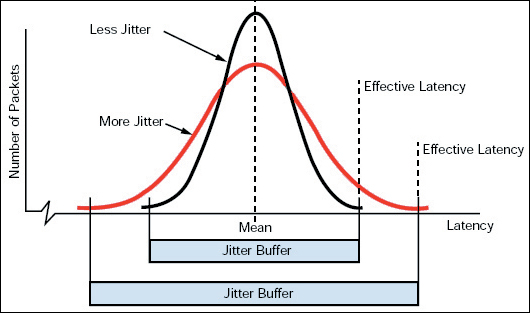 網(wǎng)絡(luò)上的抖動(dòng)出現(xiàn)50到200毫秒的標(biāo)準(zhǔn)偏差并非罕見。相比之下,企業(yè)LAN卻很少出現(xiàn)超過幾毫秒的抖動(dòng)。