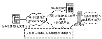其次,目前國內(nèi)VoIP的運(yùn)作模式,在VoIP運(yùn)作模式中涉及到網(wǎng)絡(luò)運(yùn)營商和業(yè)務(wù)運(yùn)營商。我們用下面的例子來具體說明該問題。假定在某地,在其他運(yùn)營商服務(wù)區(qū)域內(nèi)沒有本地網(wǎng)資源的業(yè)務(wù)運(yùn)營商B利用該服務(wù)區(qū)內(nèi)擁有本地網(wǎng)資源和互聯(lián)網(wǎng)資源的網(wǎng)絡(luò)運(yùn)營商A的ADSL寬帶接入到A的公眾互聯(lián)網(wǎng)上,在該網(wǎng)上,業(yè)務(wù)運(yùn)營商B通過非法架設(shè)網(wǎng)守(計費(fèi)控制系統(tǒng))及網(wǎng)關(guān)等設(shè)備開展VoIP業(yè)務(wù),然后在自己服務(wù)區(qū)域內(nèi)的PSTN網(wǎng)絡(luò)上進(jìn)行“落地”,這樣則直接旁路了網(wǎng)絡(luò)運(yùn)營商A的電話語音業(yè)務(wù),而網(wǎng)絡(luò)運(yùn)營商A自己建設(shè)維護(hù)的互聯(lián)網(wǎng)則沒有得到任何補(bǔ)償,于是只能采用技術(shù)跟蹤然后封堵的方式來遏止業(yè)務(wù)運(yùn)營商B的VoIP業(yè)務(wù)開展。在該情況下,業(yè)務(wù)運(yùn)營商B的VoIP業(yè)務(wù)很難做大,而網(wǎng)絡(luò)運(yùn)營商A也可以明正言順的進(jìn)行封堵政策。最終受到損害的將會是整個VoIP產(chǎn)業(yè)(圖1)。因此,從成本和公平角度來說,必須對建設(shè)維護(hù)互聯(lián)網(wǎng)的網(wǎng)絡(luò)運(yùn)營商A進(jìn)行一定的補(bǔ)償,使其有足夠的激勵去讓VoIP業(yè)務(wù)提供商利用其網(wǎng)絡(luò)開展業(yè)務(wù)。也就是說必須建立VoIP承載網(wǎng)運(yùn)營商和VoIP業(yè)務(wù)運(yùn)營商之間的結(jié)算體系!