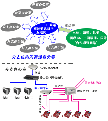 某跨國公司A(因涉及客戶商業(yè)保密原因,故隱去真實名稱),在中國目前共有40多家分公司及辦事機構(gòu)。其不同分公司及辦事機構(gòu)之間需要大量的語音通信支持業(yè)務(wù)往來,話音通信主要是通過傳統(tǒng)的電話方式,即不同機構(gòu)將使用的不同類型的PBX(數(shù)字程控交換機)接入本地電話公網(wǎng),通過電信公司的固定長途網(wǎng)進(jìn)行通話。與此同時, A公司各不同機構(gòu)都有與遍布各地的用戶經(jīng)常溝通的需求,此種通信方式使得整個A公司要支付巨額電話費用。更重要的是,A公司目前此種通信方式不便于整個語音通信系統(tǒng)的統(tǒng)一管理及維護(hù),更不利于整個公司以一個統(tǒng)一的公司形象對外。