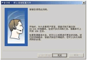 當你15分鐘的訓練全部結(jié)束后,將會看到如圖12所示的對話框,此時原來默認的用戶配置文件將用剛才所收集的訓練數(shù)據(jù)進行更新,稍候片刻,你就會看到如圖13所示的對話框,告訴你語音訓練已經(jīng)結(jié)束。