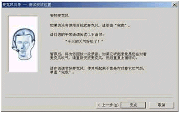 。2)現(xiàn)在你看到的是"安放麥克風"對話框(如圖5所示),如果你沒有使用頭戴式麥克風,那么就可以點擊"完成"按鈕。