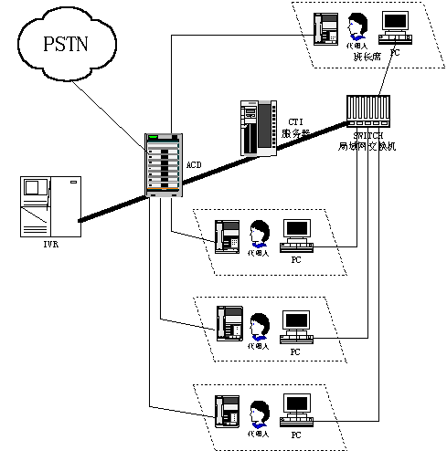主題詞:呼叫中心 CTI IVR ACD 因特網(wǎng) 客服代理