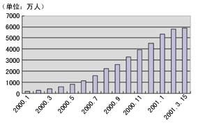 從使用即時通訊的用戶數(shù)目來看,其增長速度十分驚人,到2001年3月份,其總量達到了6000萬人。這主要得益于中國這兩年互聯(lián)網發(fā)展速度迅猛,而且這還與人們對于即時通訊的需求在增加有關,很多人在網上有兩個甚至三個或更多的OICQ號碼以便與不同的伙伴聯(lián)系。