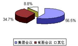 與以上領(lǐng)域相比,我國的遠程教育和遠程醫(yī)療尚處于發(fā)展初期,所占份額分別是8.7%和7.9%。這反映視頻會議系統(tǒng)在遠程教育、遠程醫(yī)療等方面建設(shè)力度還不夠大。不過,據(jù)我們研究表明,這兩個領(lǐng)域的應(yīng)用近年來呈現(xiàn)出蓬勃發(fā)展的勢頭,相信很快就會有良好的表現(xiàn)。