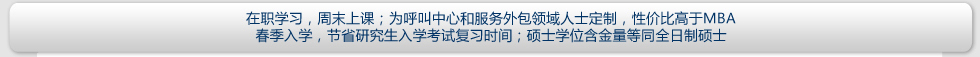 | 報名條件 | 擁護中國憲法,遵守法律、法規(guī),品行端正,身體健康,并能堅持在職學習; 大專及以上學歷,旨在提高本人專業(yè)素質和學歷層次的 社會在職人士均可報名;擇優(yōu)錄取。 呼叫中心、服務外包領域的中高級從業(yè)者,英語基礎良好的人士將獲得優(yōu)先錄取機會。 |