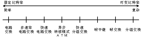 在通信網(wǎng)絡(luò)發(fā)展過(guò)程中,出現(xiàn)了多種信息傳輸方式,它們分別適應(yīng)不同業(yè)務(wù)速率,如下圖所示。這里只對(duì)比電路傳送模式和分組傳送模式兩個(gè)極端情況,對(duì)其他模式,讀者可以自行參照下圖和相關(guān)資料。