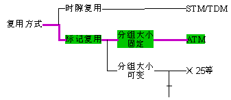 ATM即Asynchronous Transfer Mode,譯為異步轉(zhuǎn)移模式,或稱為異步傳輸模式、異步傳送模式。ATM是B-ISDN的核心技術(shù)。如前所述,電路交換和分組交換都不能適應(yīng)未來(lái)的寬帶、多速率、不同QoS業(yè)務(wù)的發(fā)展需求。為此,逐漸推出了各種傳輸模式。其中最有吸引力的便是ATM。它們的相互關(guān)系可以簡(jiǎn)明地表示如下。