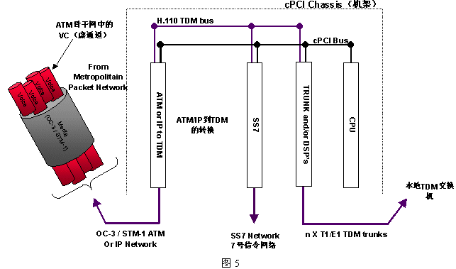 圖5是NMS公司的VoATM典型網(wǎng)關結構。