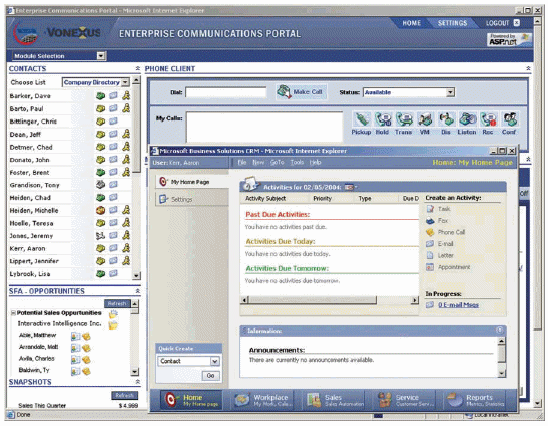 CRM,可以充分利用EIC的呼叫控制特性。該門戶可為移動和遠程用戶提供屏幕彈出功能,以及諸如統(tǒng)一訊息和存在管理等應用。