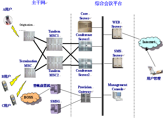 概述 。。今年來(lái),隨著電話會(huì)議技術(shù)的不斷成熟,基于計(jì)算機(jī)平臺(tái)的會(huì)議型業(yè)務(wù)應(yīng)用越來(lái)越活躍,其中電話會(huì)議系統(tǒng)、QQ聊天系統(tǒng)以及BGM便是主要熱門應(yīng)用。 。。交互式電話會(huì)議系統(tǒng)是一個(gè)真正由用戶自己管理的智能型交互式電話會(huì)議系統(tǒng),是目前國(guó)際上流行的一種召開會(huì)議的新形式。客戶利用它可以隨時(shí)隨地召開本市、國(guó)內(nèi)或國(guó)際的電話會(huì)議,人們無(wú)論身在何處,只需撥打一個(gè)事先約定的電話會(huì)議號(hào)碼和密碼,即可參加會(huì)議,并且能自由組會(huì),同時(shí)發(fā)言,自由交談?梢酝瑫r(shí)招開數(shù)十方,適用于商務(wù)研討、緊急討論會(huì)、信息匯總會(huì)、親友聚會(huì)等各種各樣的會(huì)議。