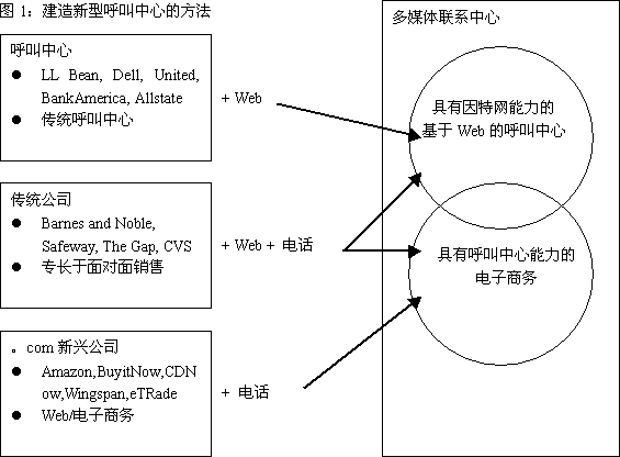 所有的公司都迫切希望找到一種途徑,使自己擁有“具有因特網(wǎng)能力的、web集成的呼叫中心”或“具有呼叫中心能力的電子商務(wù)網(wǎng)站”。圖1所示為實施方法的一個實例。但是,不管你如何稱呼它,如何達到目標,你都會面臨處理多媒體聯(lián)系的挑戰(zhàn)。多媒體聯(lián)系中心包括通過電話簽定合同和處理來自web的合同,可能是通過電子郵件,文本交談,電話呼叫,或通過web的語音呼叫。并且,大多數(shù)時候是由同一組人處理多種媒體服務(wù)。